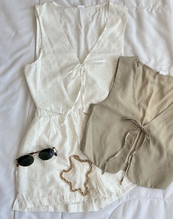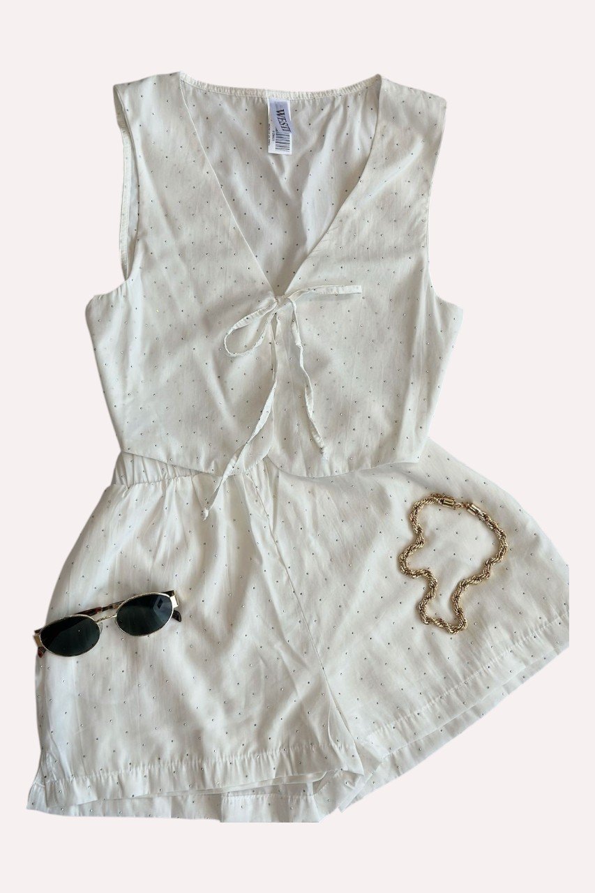 Fresco, cómodo y elegante. Short con blusa anudada al frente. Horma normal