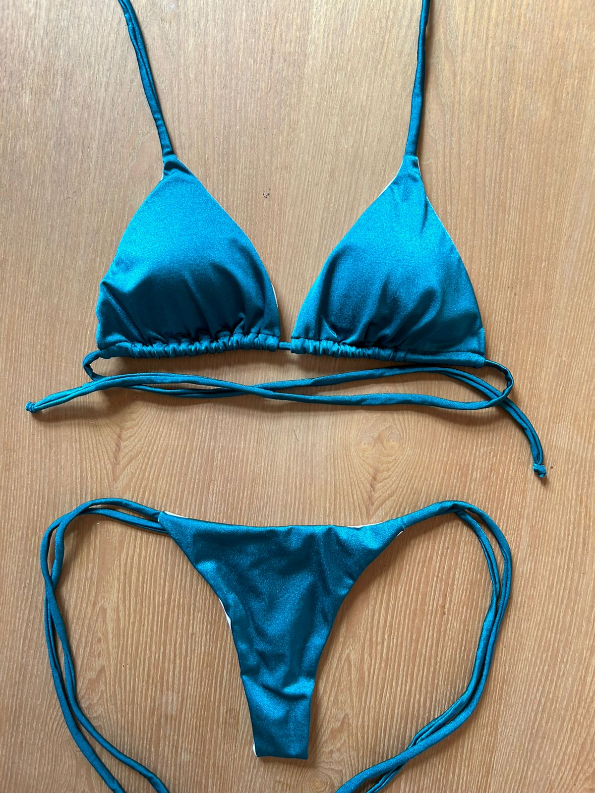Diseño de estilo clásico con top triángulo y bottom de tiras ajustables. Su acabado ofrece un look elegante y cómodo.