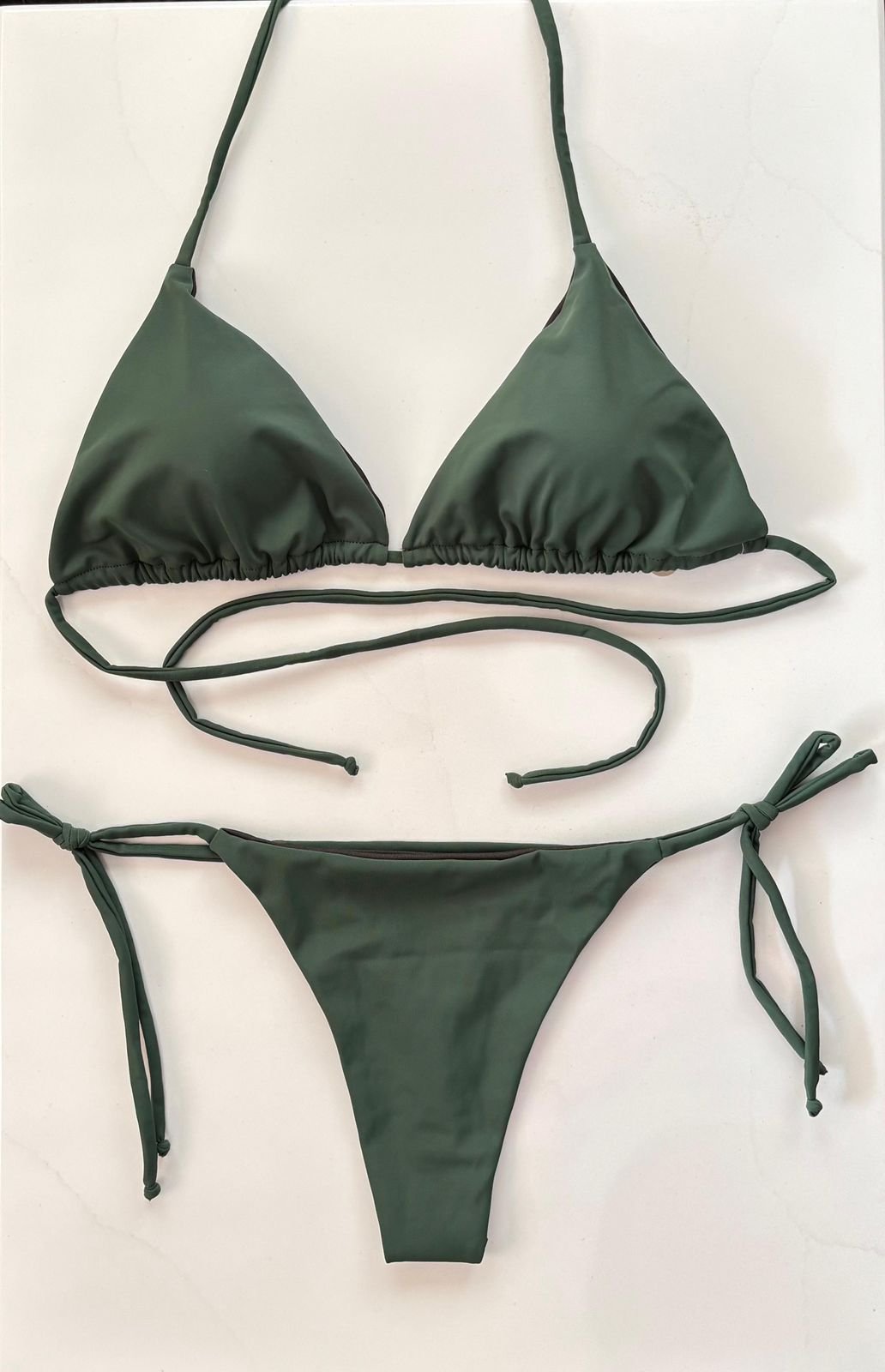 Diseño de estilo clásico con top triángulo y bottom de tiras ajustables. Su acabado ofrece un look elegante y cómodo.