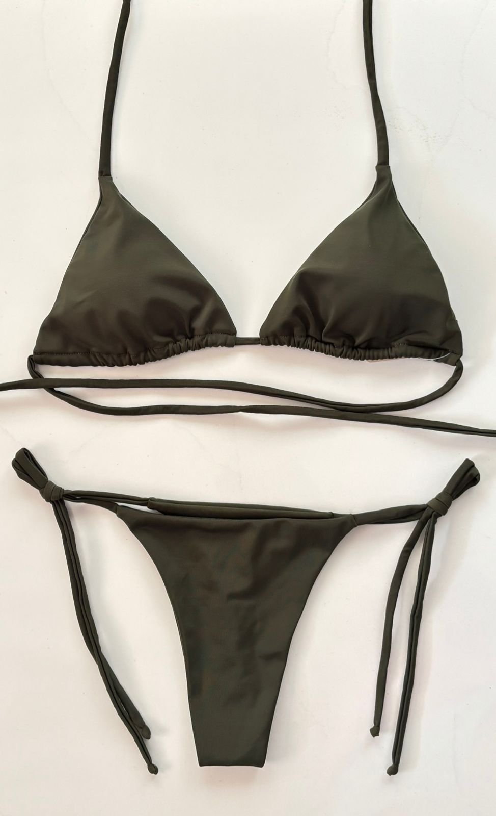 Diseño de estilo clásico con top triángulo y bottom de tiras ajustables. Su acabado ofrece un look elegante y cómodo.